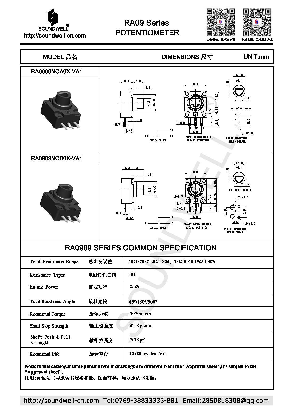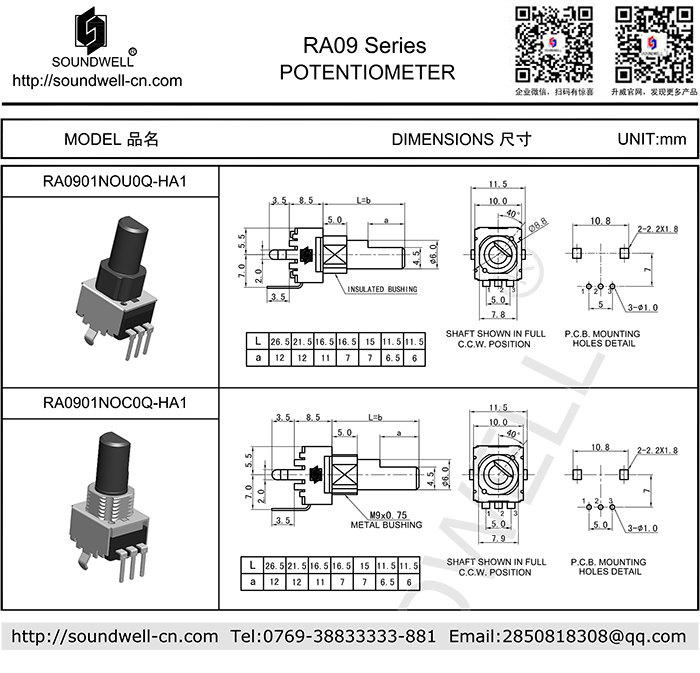 | 電位器型號: | RA09 |