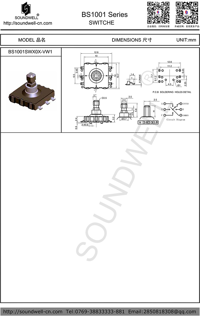 | Product Features: | Products are small, thin body, products with four direction push switch + push switches, surface mount. |