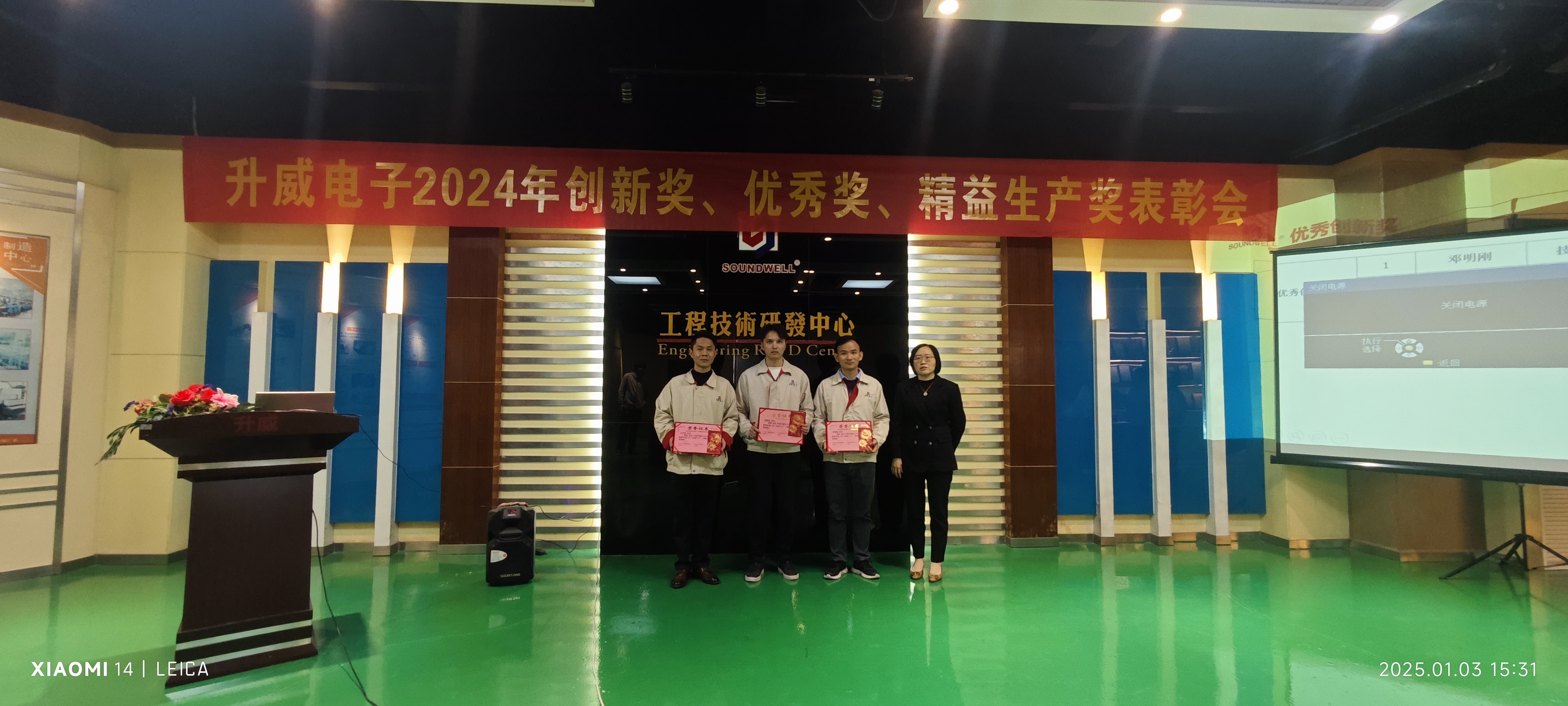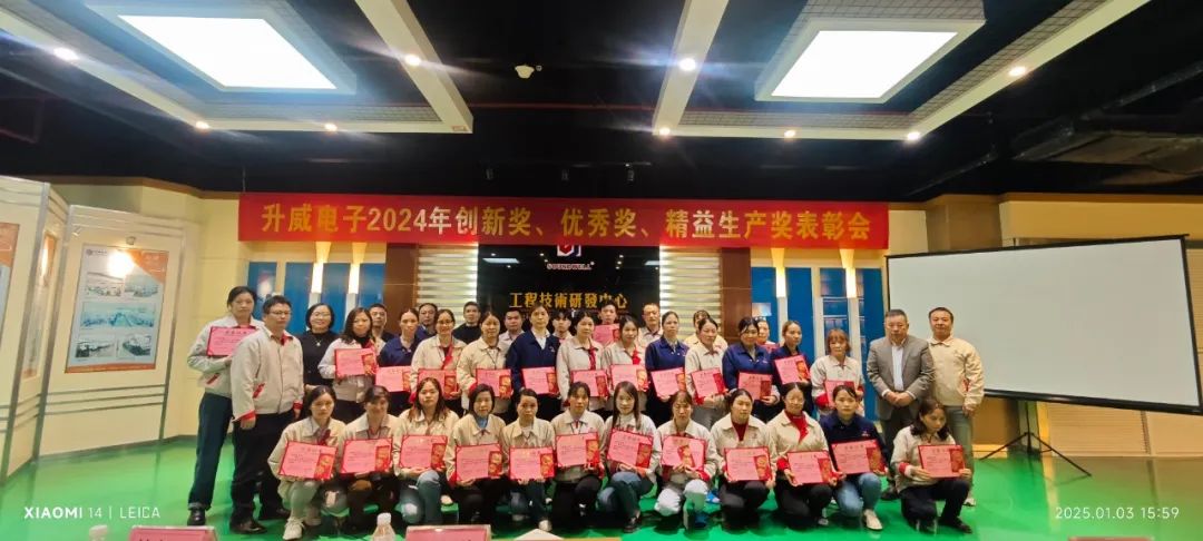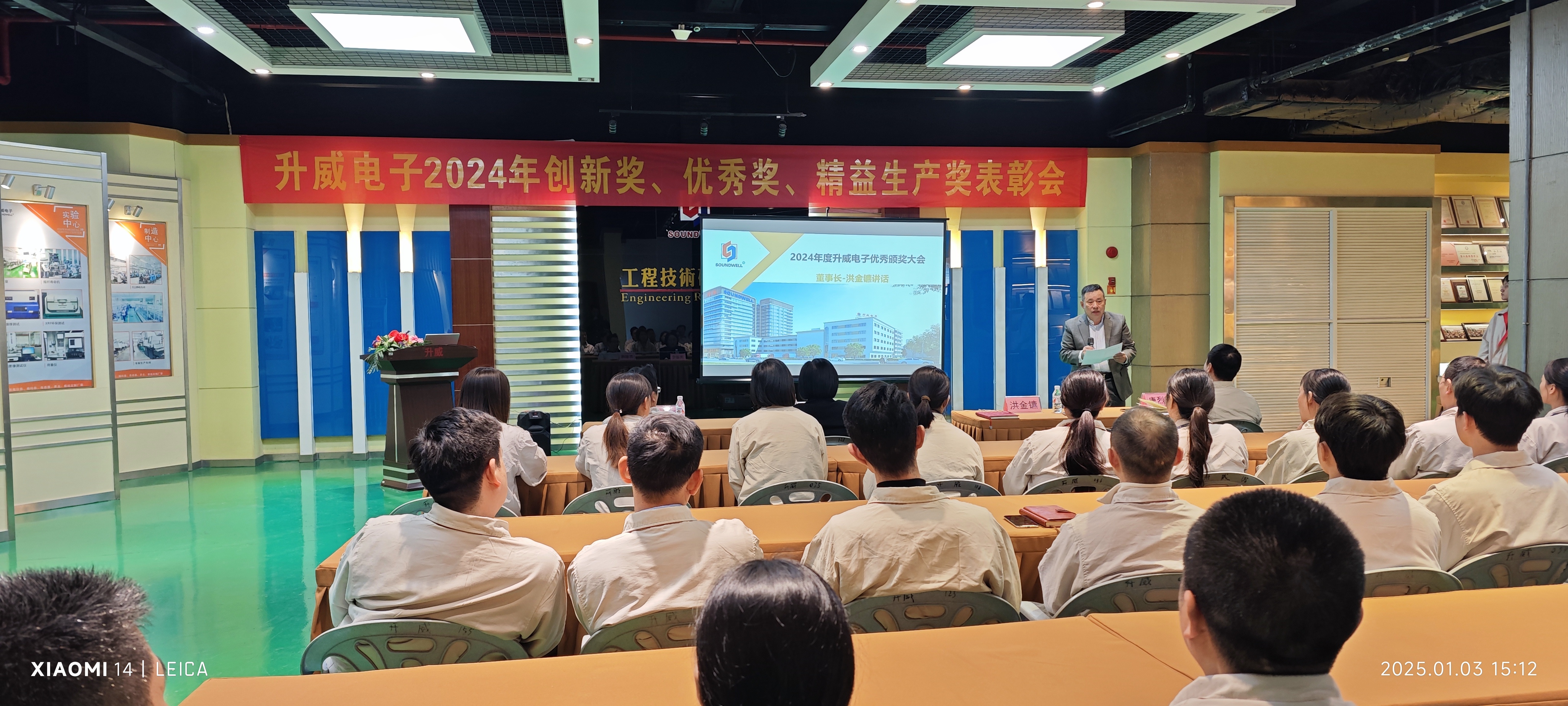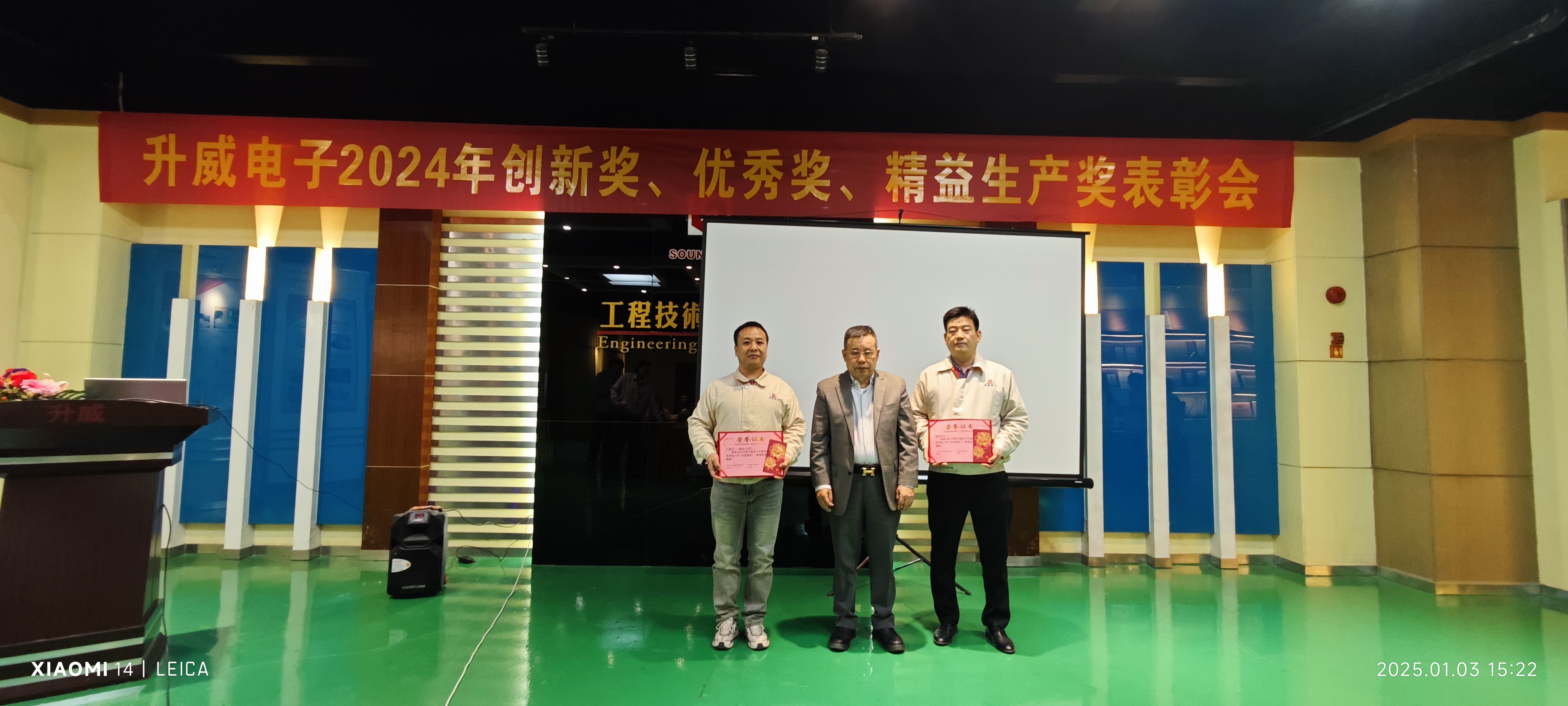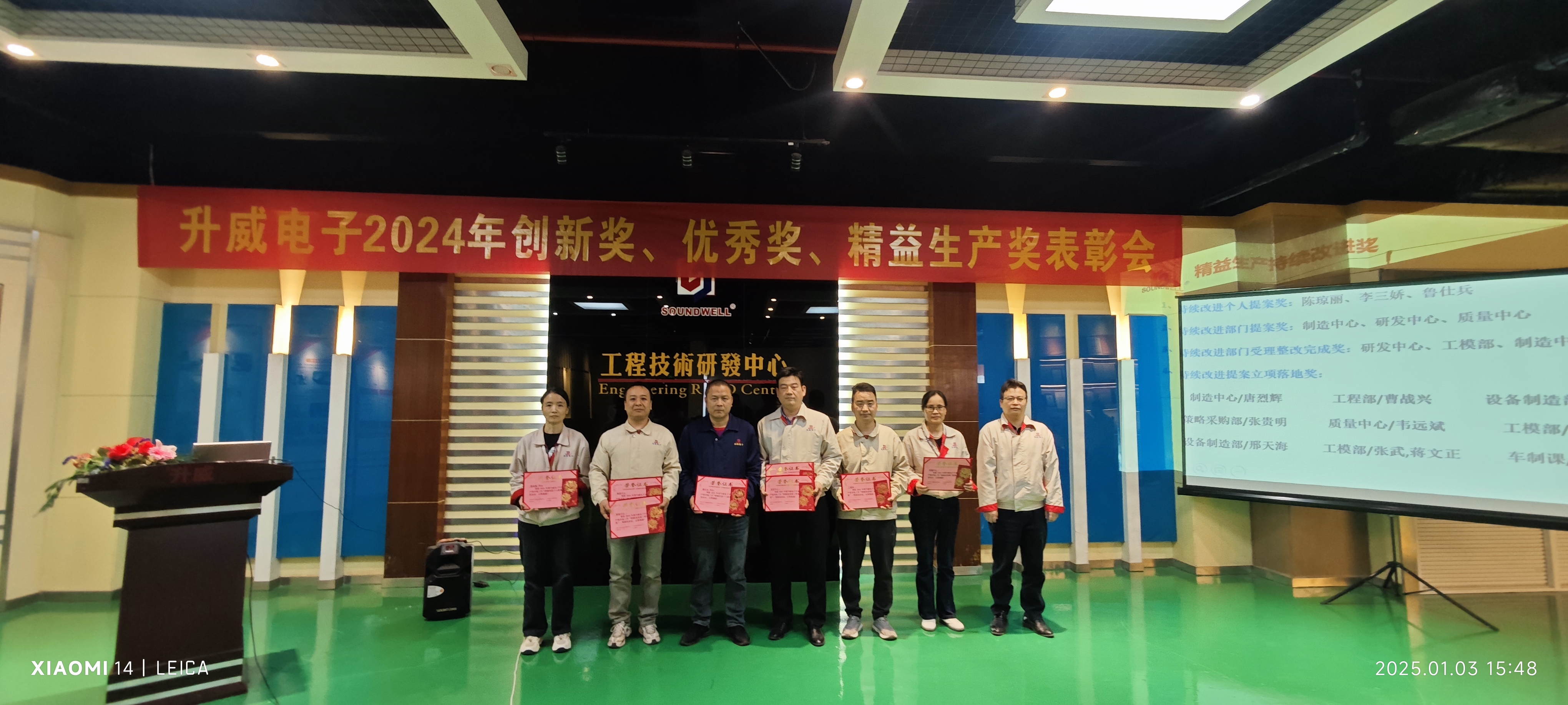 為在全公司營造“積極、向上、進(jìn)取、奉獻(xiàn)”的工作氛圍,激發(fā)升威人主人翁精神,不斷創(chuàng)造新的成績。2025年1月3日,升威電子舉辦2024年度評優(yōu)評先表彰大會。以表彰創(chuàng)新人才、優(yōu)秀個(gè)人以及優(yōu)秀部門,并設(shè)置優(yōu)秀部門獎、創(chuàng)新獎、精益生產(chǎn)獎、優(yōu)秀勞動獎等四大獎項(xiàng)。