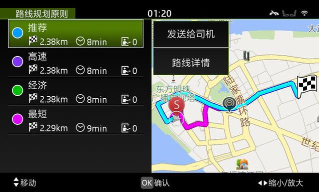車(chē)上有4塊屏幕,分別位于儀表盤(pán)、中控臺(tái)和前排座椅背部(即后排屏幕)。四屏聯(lián)動(dòng),既可分別獨(dú)立提供導(dǎo)航信息或位置查詢服務(wù),也可以由坐在后排的霸道總裁操控:直接將導(dǎo)航地點(diǎn)一鍵發(fā)送到司機(jī)面前的儀表盤(pán)和中控屏幕。