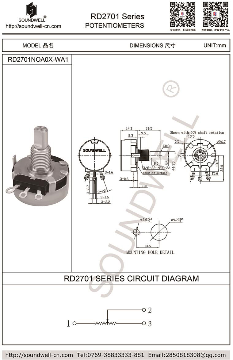 - RA13電位器金屬軸系列