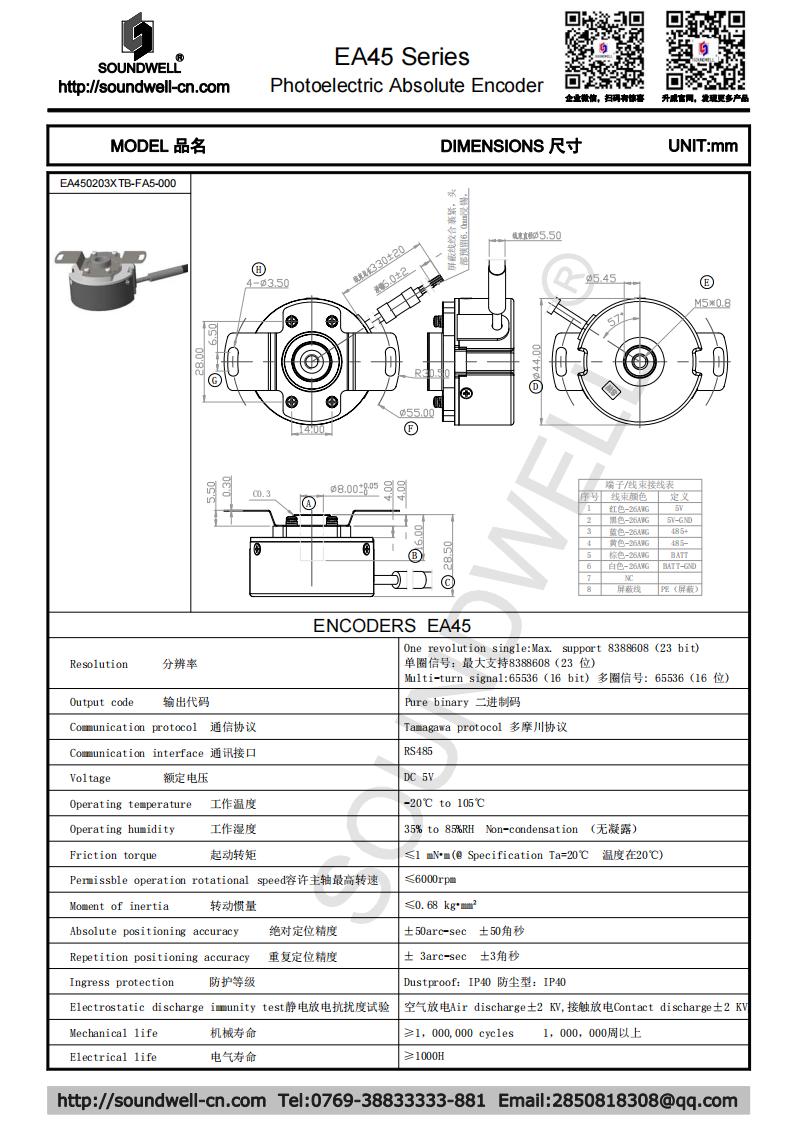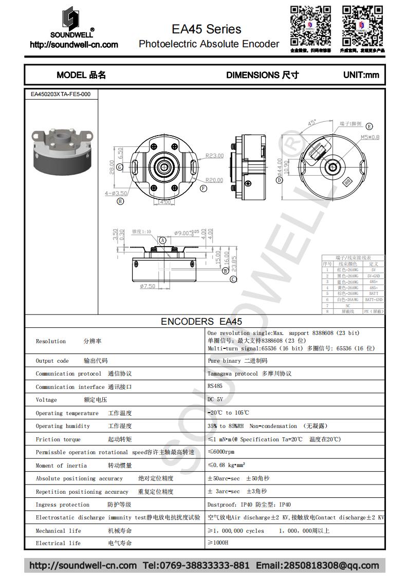 EA45單圈23B、多圈16B中空旋轉(zhuǎn)光電絕對(duì)型編碼器