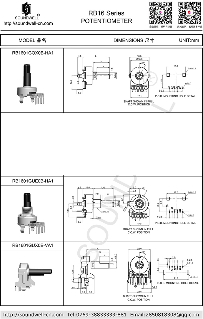 | 旋轉(zhuǎn) 電位器型號(hào): | RB16 |