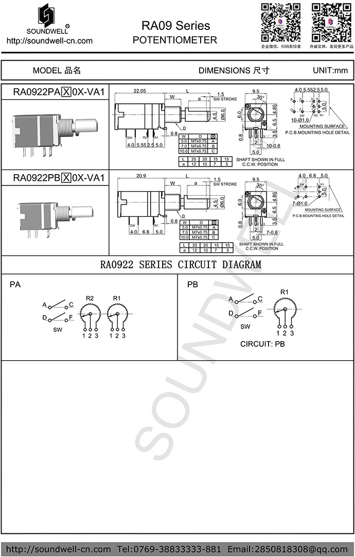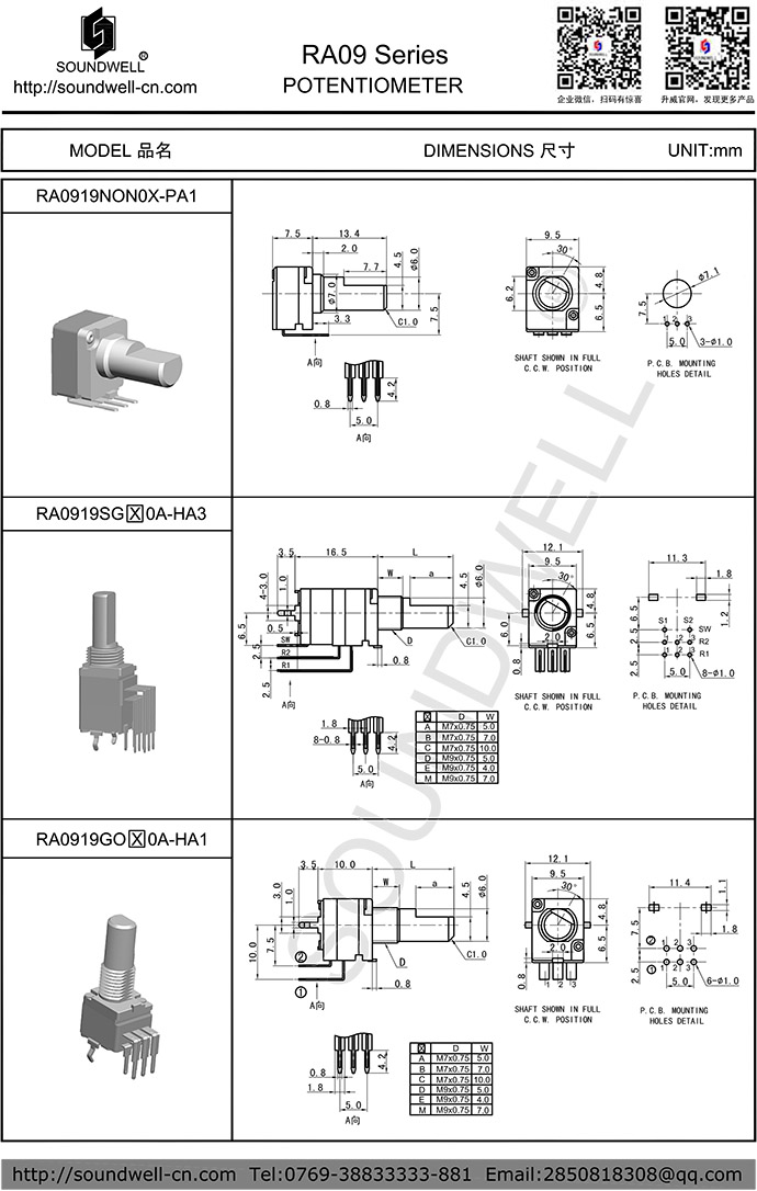 RA09帶開關(guān)電位器產(chǎn)品規(guī)格參數(shù)